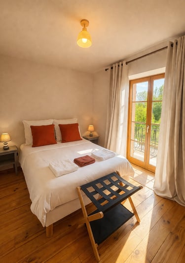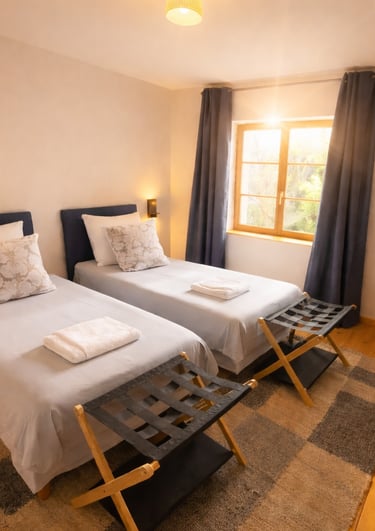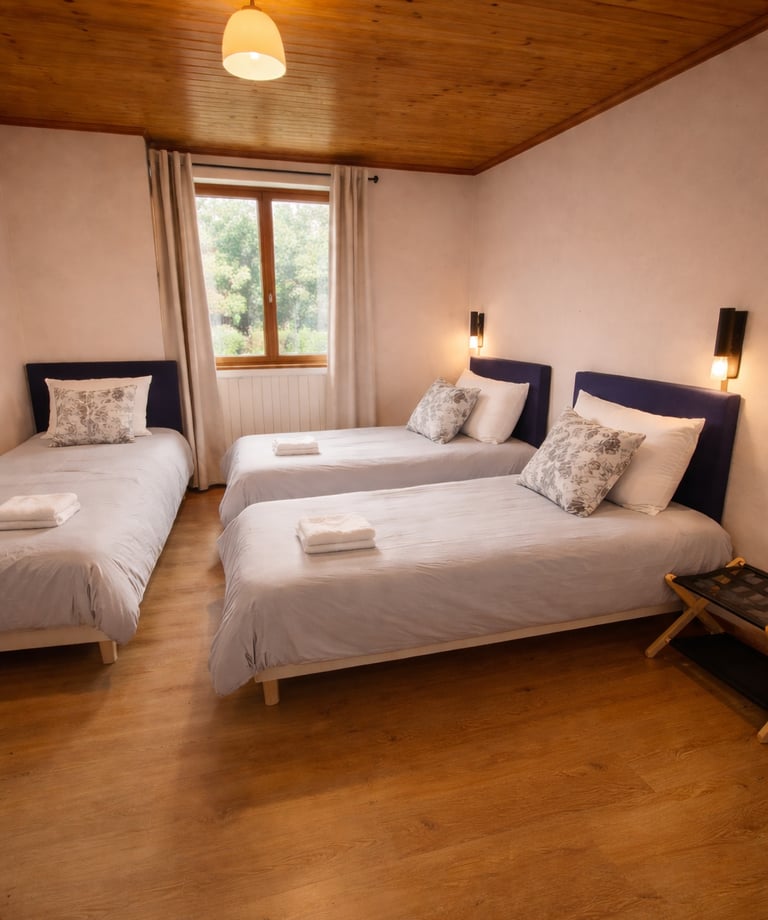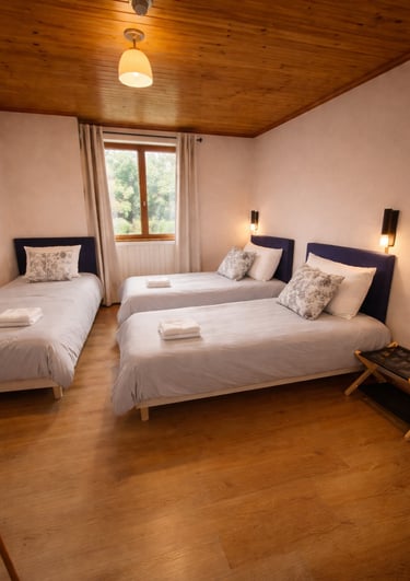 Nos chambres vont de une à six personnes, et ont chacune une salle de bain privée. Venez avec bébé, il aura son lit parapluie - Venez avec toutou il aura ses gratouilles Venez avec votre cheval il aura un immense pré et de l'herbe verte